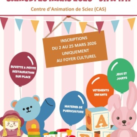 Rendez-vous Don du Sang de 15h30 à 19h au CAS 24 Mar 2026 Cinétoile Rue Málaga à 20h30 au Théâtre du Guidou 27 Mar 2026 Evènement Vente de livres d’occasion Bibliothèque de Sciez 27 Mar 202628 Mar 2026 Evènement Bourse Petite Enfance de 9h à 17h au CAS 28 Mar 2026